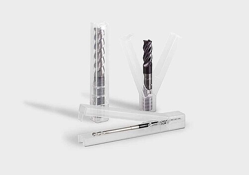 Plastic packaging tubes for solid carbide cutters and solid carbide drills
